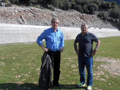 Ωστόσο δεν σταματήσαμε εκεί. Αποφασίσαμε να δούμε τον αρμόδιο για αυτή την υπόθεση, τον Αντιδήμαρχο Τεχνικών Έργων & Πολεοδομίας κ. Τόλια Νίκο, ο οποίος είναι πολιτικός μηχανικός. Προσπαθήσαμε να δούμε και τον δήμαρχο κο Μαράβα, ο οποίος όμως έλειπε. Ο ευγενέστατος κος Τόλιας δέχτηκε την παράκληση μου να ‘ρθει επί τόπου και να δει το γήπεδο. Την περασμένη Κυριακή το πρωί φύγαμε και οι τρείς για τον Αετό. Ο αντιδήμαρχος έμεινε έκπληκτος από το έργο αυτό του Συλλόγου. Τότε κατάλαβε την πραγματική αξία του γηπέδου αυτού και την χρησιμότητα του στο μέλλον. Του εξήγησα πως οι Αετιώτες έκαμαν με το υστέρημά τους ένα έργο για όλα τα χωριά, το Γήπεδο του Ασπροποτάμου.